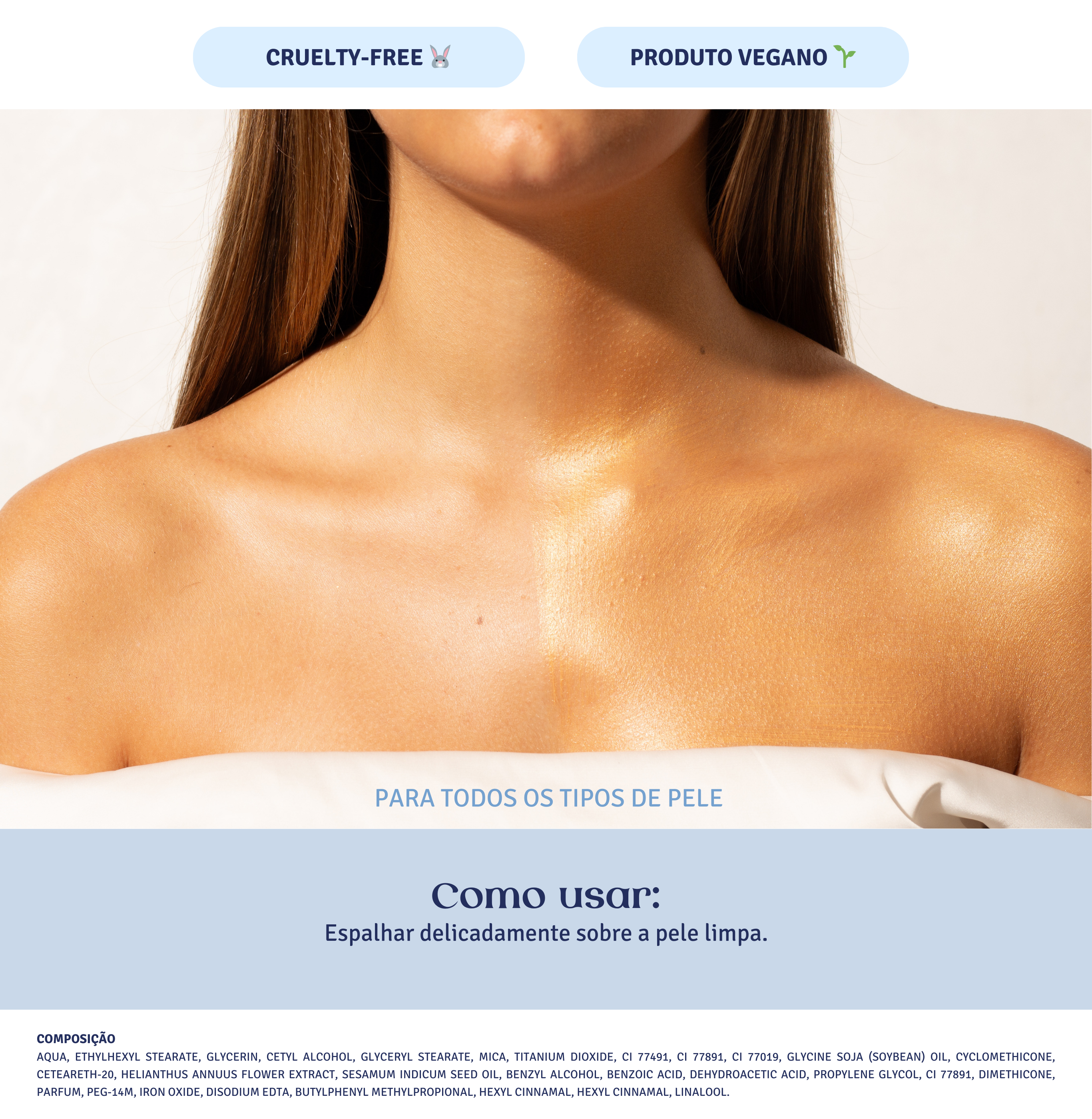 - ✨ Vitamina C: Antioxidante que ajuda a proteger a pele contra os danos causados pelos radicais livres. Sua presença no iluminador corporal pode contribuir para a prevenção do envelhecimento precoce da pele, mantendo-a saudável e iluminada.